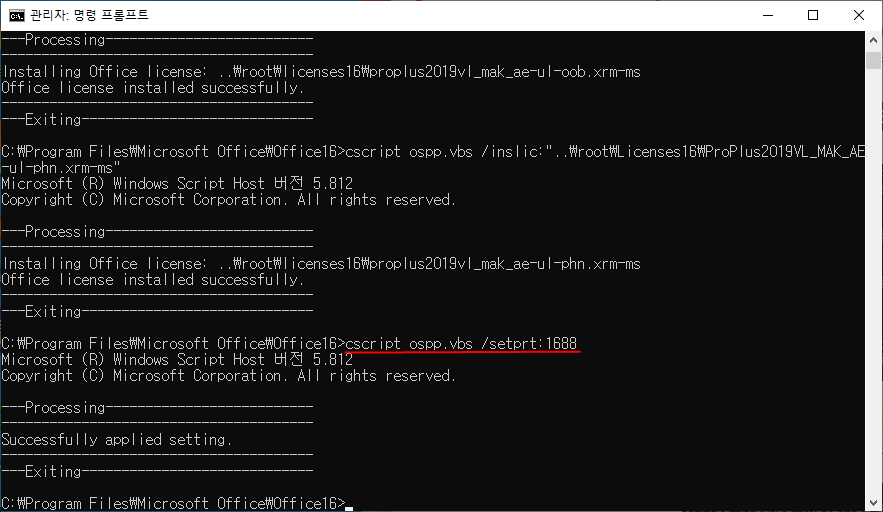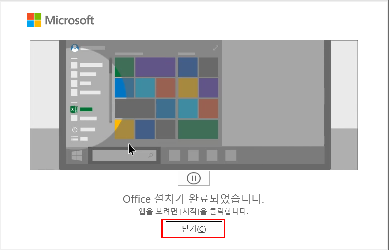 - 여기까지 따라오셨으면 일단 오피스2019 정상 설치 완료