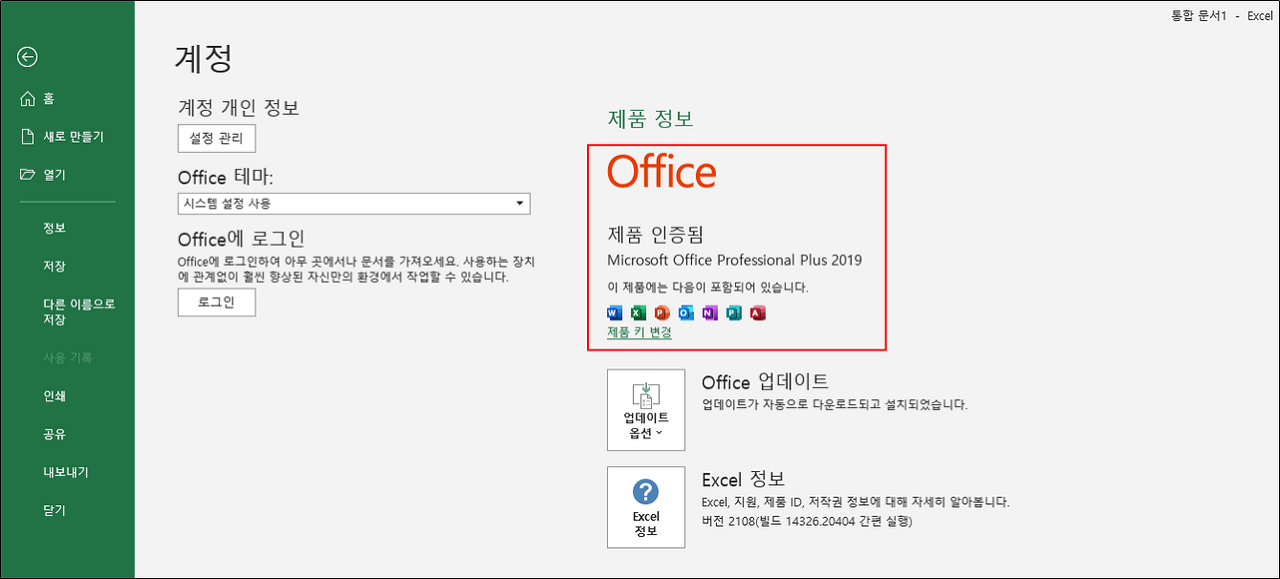※ 마이크로소프트 공식 오피스2019 다운로드&설치 파일로 안전함