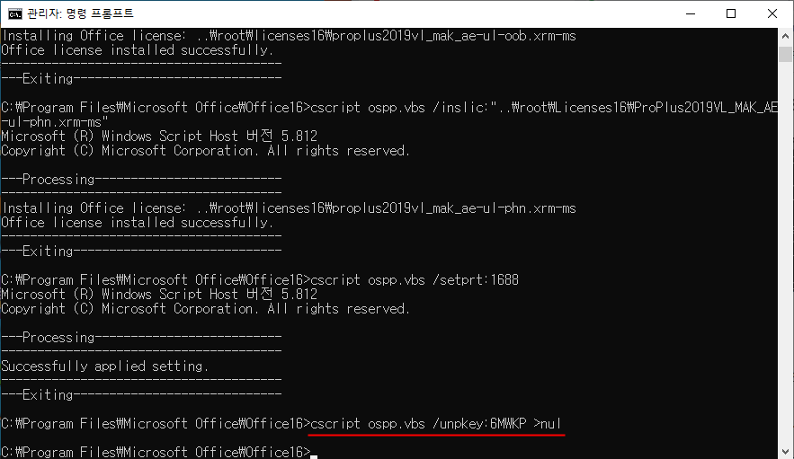 2) cscript ospp.vbs /unpkey:6MWKP >nul