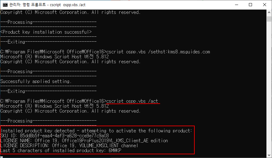 4) cscript ospp.vbs /sethst:kms8.msguides.com