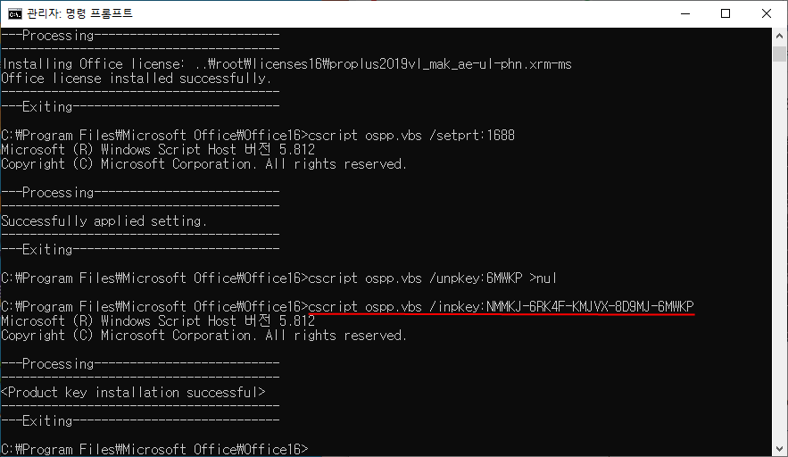 3) cscript ospp.vbs /inpkey:NMMKJ-6RK4F-KMJVX-8D9MJ-6MWKP